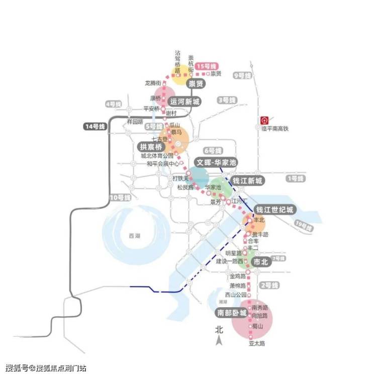 地铁方面有在建地铁15号线(预计2027年通车),项目步行即可到崇贤站/崇杭街站,4站到运河新城、10站到武林/钱江新城,还能与1/2/4/6/7/18号线换乘,通勤价值+板块估值会明显上一台阶。