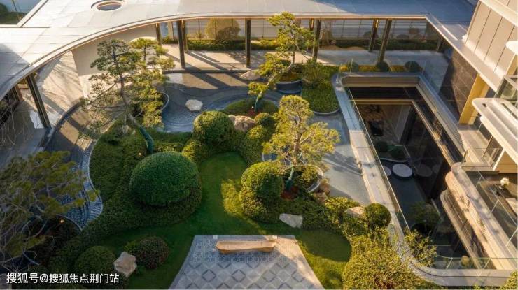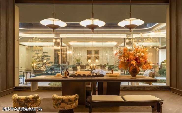 下沉庭院设计假山叠石、双叠飞瀑、瀑布水帘,搭配弧形石拱桥,复刻郭庄“小中见大”的造园智慧,形成“步移景异”的江南雅韵,在会所内就能沉浸式赏景。