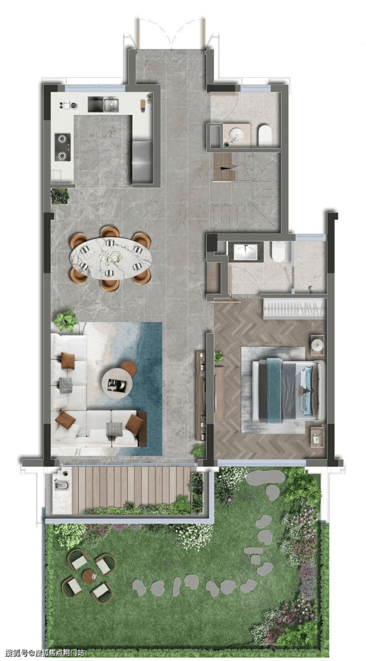 建面约160㎡的排屋客厅的面积约55㎡,光线无死角,并带有足够大的公共天地。一楼的空间足以给全家人提供各自不同的舞台,容得下父亲的棋台,母亲的姐妹圈,妻子烘焙区,女儿的秋千。