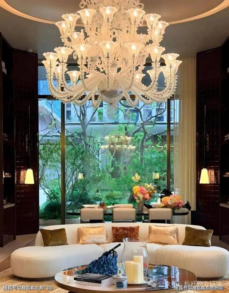 下沉式庭院巧妙借鉴自然山谷的形态,以叠水、绿阶、浮岛等元素精心构筑,呈现“飞瀑挂崖”的生动景致。庭院中央的女王画舫若隐若现于林水之间,业主可在此品茗赏景,尽享“都市女王”般的优雅与从容。