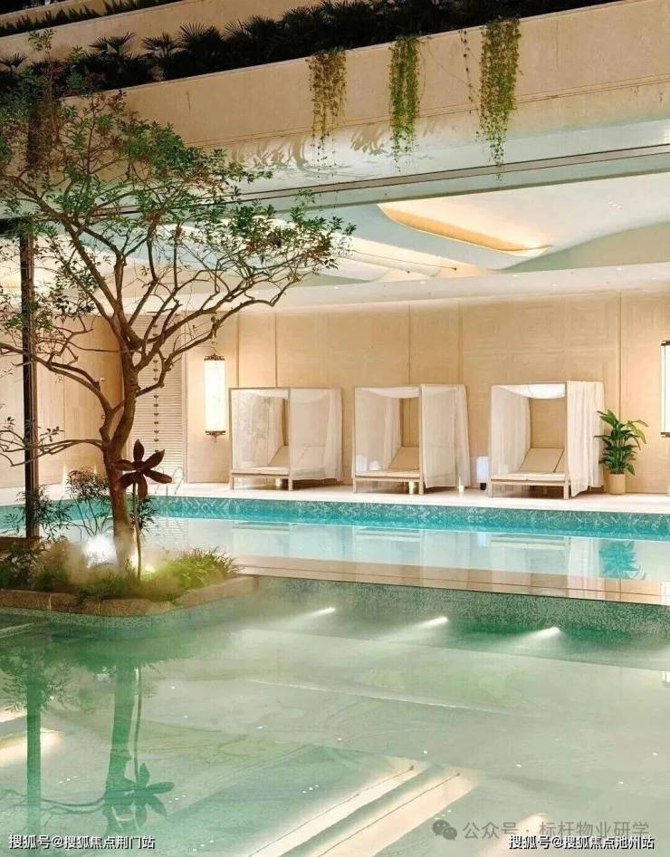 以《红楼梦》中“大观园”为灵感,蕙澜月华打造一座立体叠合的山水园林,通过山水意趣的象征表达与建筑即景的精巧融合,呈现“芥子须弥,小中见大”的东方美学意境。约320米的下沉式庭院,仿若山谷溪涧,营造出“瀑布挂崖间,飞空作碧玉”的壮丽景观;室内恒温泳池与室外嬉水池间,采用可开可合的设计,模糊内外界限,实现自然与建筑的和谐共生。有氧健身空间以“玻璃盒子”的挑空姿态,悬浮于下沉庭院之上,为运动者带来开阔视野。在这里,健身的先生、游泳的太太、嬉戏的孩子,既各享其乐,又共享视线中的陪伴,多维场景的高频互动,诠释了奢华的真谛——不仅是空间,更是情感的交融。