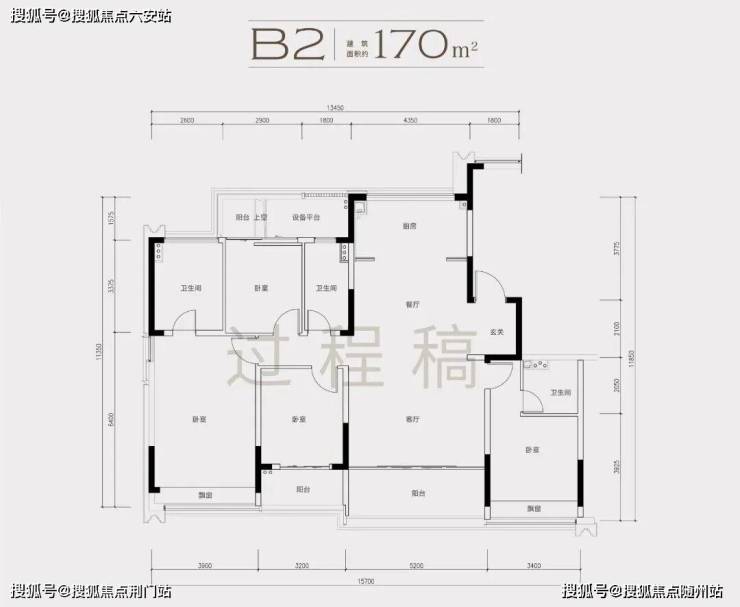 170方户型,是南厅139方户型的放大款,次卧多了一个套房空间。