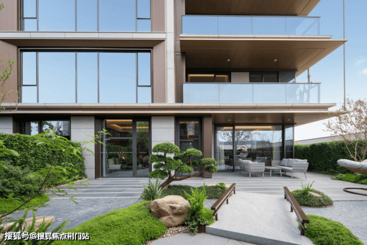 叠墅部分则延续了“现代形,东方意”的咏溪云庐设计语言,以香槟色铝板与玻璃幕墙为主材,通过利落的水平飞檐与更大窗墙比,营造出轻盈通透的当代感。这种“双线并行”的设计策略,既满足了高净值客户对欧式庄园的审美执念,又契合了新兴财富阶层对现代生活的功能需求。
