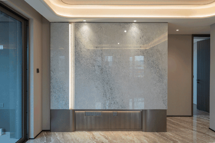 以印度蓝奢石和铝板为基座,勾勒四面铝板线条+金灰色铝板窗框+北面透光大玻璃+南面铝板,从远处看,像蓝钻,从近处看,像艺术品。既形成“层次感品质住宅”,又创造出城市里的“美学灯塔”。在楼市,室内空间又被称为“房子的灵魂”,直接决定了居住体验!