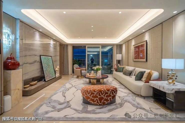 在精装修标准上,潮越万象府不输千万级豪宅,譬如:海纳百川大理石电视墙、奢石主背景+金属网玻璃、地面克罗地亚木纹石、弧形扪皮沙发墙……诠释雅致格调。