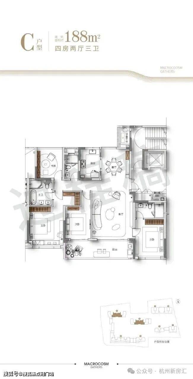 建筑面积188㎡4室2厅3卫,方正格局,空间规整。餐厨系统升级,配置约3.3m超长操作台;通透餐厅。双主卧套房配置;书房可改造为亲子活动室或影音房。整体尺度奢阔,适合改善家庭。