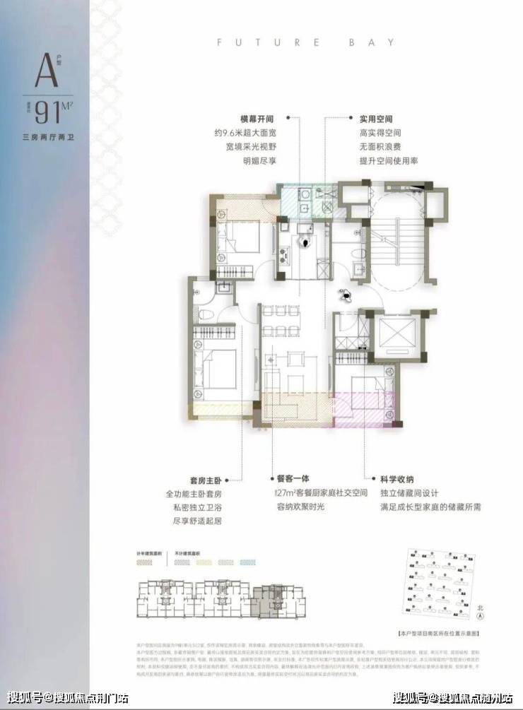 以建面约91㎡的户型为例,它做到了三房两厅两卫,且为真三房南北通透设计。
