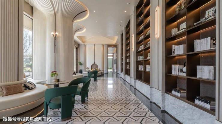 与这两年流行的“阔绰”门头相比,这座鎏金门头最大的亮点是通透——不仅顶部有一个圆形的镂空,偏置的大堂也为风景让了路,正前方没有任何遮挡,反而 把最精彩的立体花园化作一幅动态图景,点缀了整条街道。