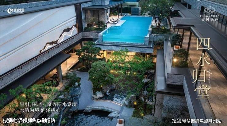 鼎筑约50米酒店式华盖门仪,进阶归家体验;引水入园,以溪涧、逸亭、瀑布、小桥约“150米中央景观水系松壑长风”;复刻《溪山清远图》。
