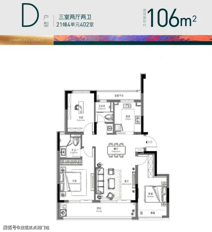 低密大盘的第一个红利,自然是夸张的得房率:据第三方测算,入门的约106㎡实用率就有85%, 空间感媲美很多120方左右高层项目。