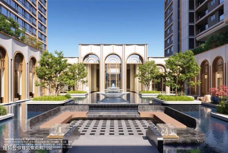约40米的星级酒店式归家大堂,门前,是姿态优雅的罗汉松和朴树,与涌泉相伴。最吸睛的当属那座潮水雕塑,大面的白金奢石在光影下流淌着温润光泽,非常气派。