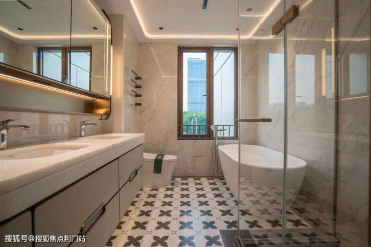 卫生间杜拉维特的盥洗盆、马桶、浴缸,汉斯格雅的龙头、淋浴花洒,这在同价位里很少有这样的配置。