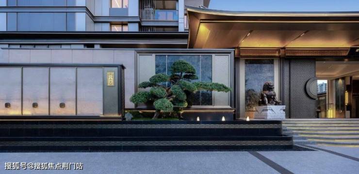 景墙还别出心裁地采用高低墙的设计,立体而饱满。两侧高约2米(含基座)、重约600斤铜狮镇宅,据说这是建发千万级顶豪才有的「压箱宝」。