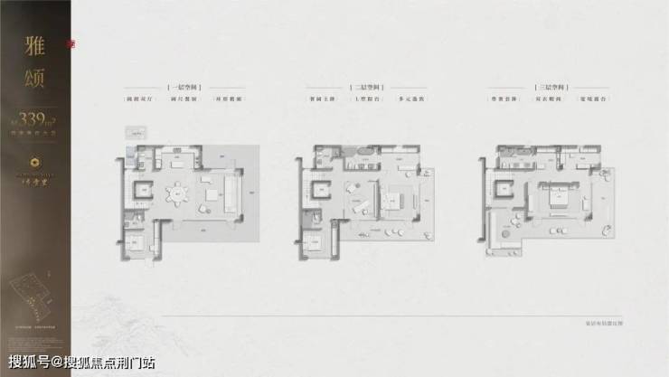 最迷人的要属建面约339㎡西边套,每一层皆有L型环绕式檐廊、阳台或露台,一层一天地;主卧更独占三楼,躺在大床上,就可以看到漫山梅花。