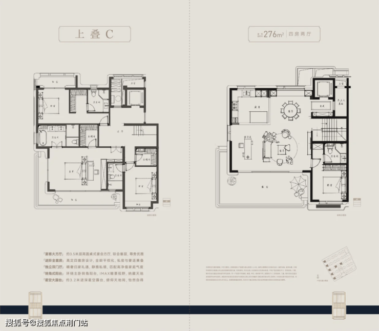 本项目主打户型面积约为210至280平方米,精心设计下叠与上叠首层,均配备南北独立入户门,地下室亦设有南北双向入户门厅及独立车位。上下叠巧妙规划,实现“无交集归家动线”,营造出仿佛无邻居打扰的私密空间。此外,上下叠均设有独立的层高6米的地下室,室内空间采用全套房设计,首层挑高约3.6米。无论是下叠还是上叠,均代表着当前市场产品力的巅峰之作。