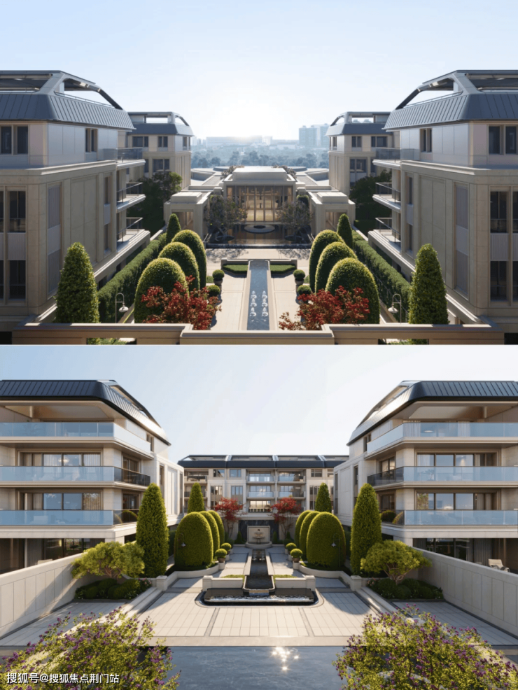 中庭景观借鉴法式园林的对称美学,构筑中轴景观。