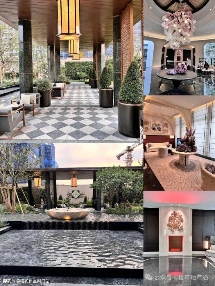 步入示范区,踏入空中廊桥,底部就是下沉式庭院(会所);接着进入圆厅,正中央一个巨大的丁香花瓣雕塑悬空而下,和案名遥相呼应,仪式感从此刻凸显