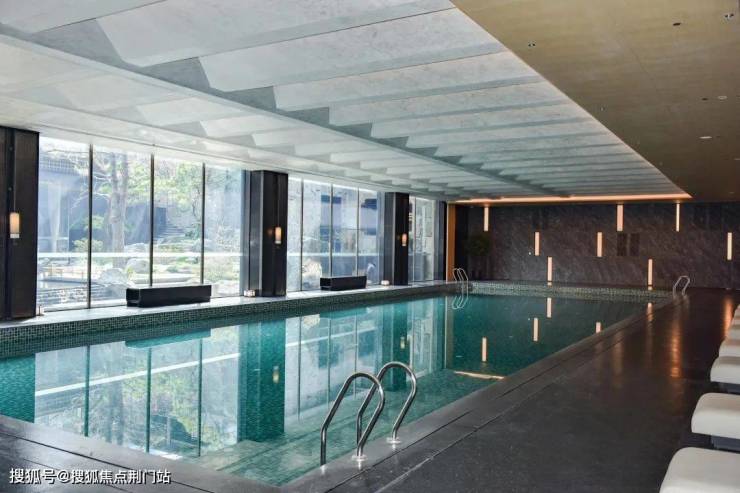 恒温泳池是会所的一大亮点,游泳体验更为宽阔、舒适;黑山石、梅花金属格栅等元素的植入,更是营造出自然汤泉的意境。