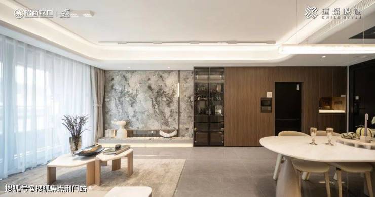 包括室内餐客厅圆弧吊顶、全屋墙布的色彩、中央空调的隐形设计,以及厨卫五金家电的质地,他认为,人只有在质感的家中,才能得到精神的放松。一直以来,他秉承长期主义的理念,对于置业更是如此,宁可惦着脚买,也不要将就。
