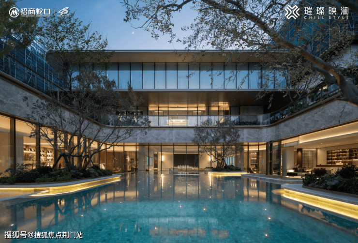 马尔代夫的深邃:还是下沉式庭院,卡拉卡白石材马赛克包裹的戏水池,在夜色下状如星河闪耀,三棵源于地中海的“万木之王”银叶油橄榄树点缀其中,更有层级式的叠水,休闲卡座,让身临其境地体验海岛度假般的松弛和自在。