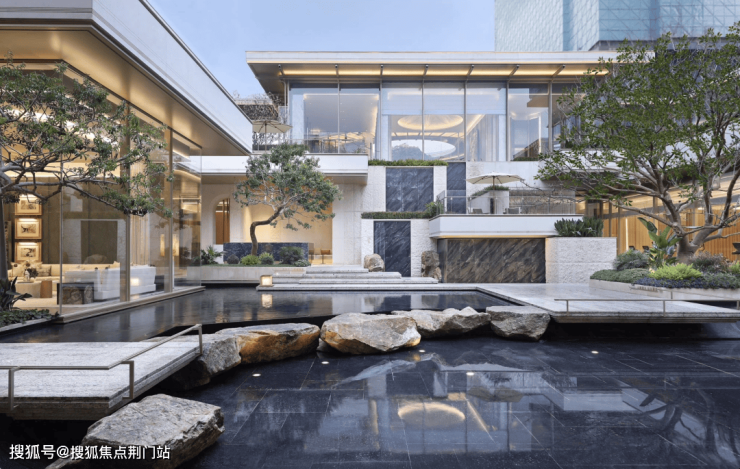 整面运用极致对称美学、石材屏风打造的超级门庭,不仅给人视觉上的冲击力,更能给你审美上的平衡感,完美诠释经典美学魅力。