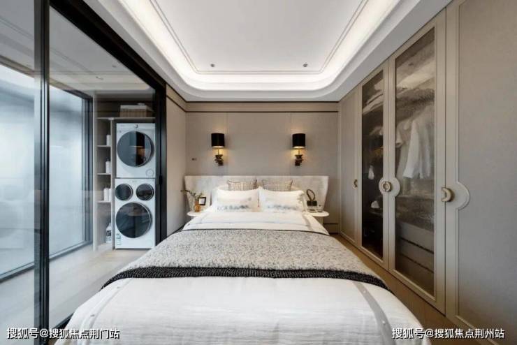主卧270度转角飘窗,L型全景采光面,不仅将南向园林与北侧城市光影尽收眼底,更创造了一个沉浸式的观景休憩角落。与之匹配的L型衣帽间,实现了衣物、配饰与箱包的系统化收纳。同时还预留保姆家政间,客厅阳台封闭后仍保留多阳台&设备平台,兼顾观景与实用晾晒。