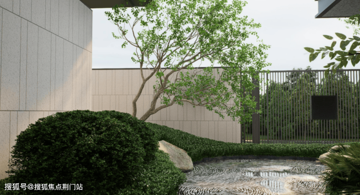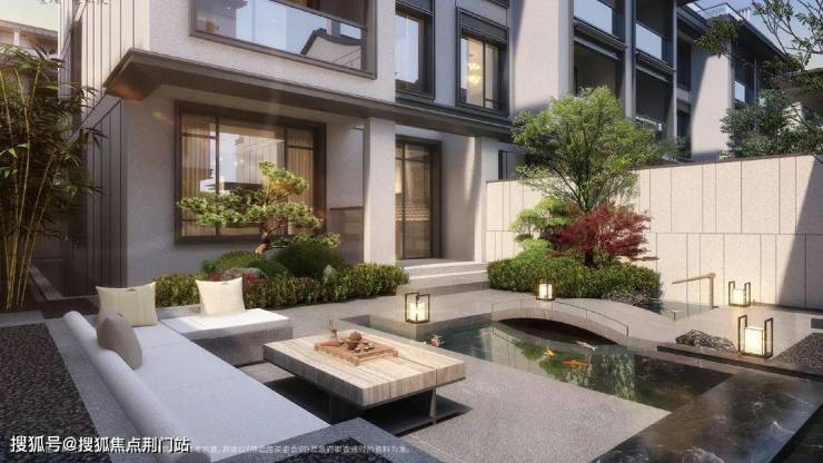 不同于市场上部分联排院子的局促格局,金翊·金云院每户均配备南向方正庭院,部分户型更享前庭后院的双重景致。例如建面约293㎡的户型,以"多进式"布局营造渐进式的归家体验:前厅以水为引,叠水景观自然成趣;侧院铺就蜿蜒小径,点缀灌木与景石,形成“一步一景”的过渡空间;后院则以静思休憩为主,铺展草坪种植树木,尽揽天光云影。