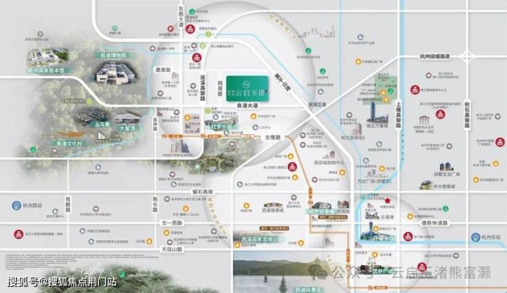 直线距离约2.5公里即至安藤忠雄设计的杭州良渚文化艺术中心“大屋顶”,近拥光剧院、良渚博物院、杭州国家版本馆、良渚古城遗址公园,人文气息浓郁