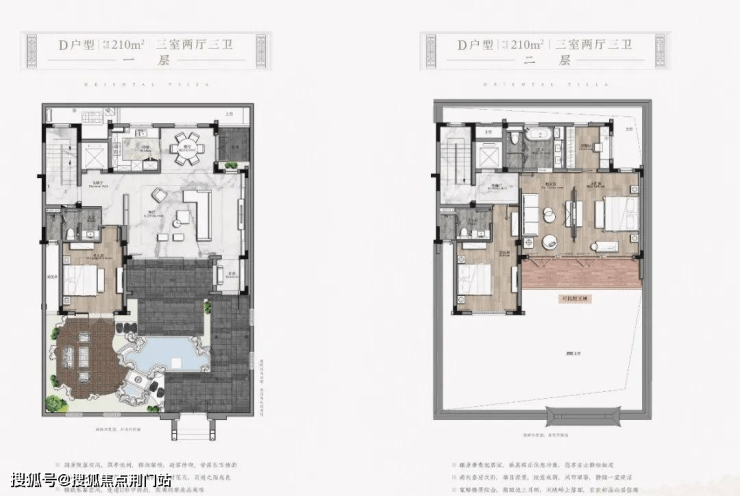 墅区遵循中式古建风格,以三重围合式布局,还原更纯粹的中式院墅界域。客松迎门、照壁拦风、歇山屋顶、白墙黛瓦、飞檐戗角、滴水瓦当、亭台水榭、花街铺地、雕花漏窗、太湖奇石......大师团队汲取中式传统建筑符号精髓,匠作纯粹的中式风雅美学,和鸣华人根植血脉的院子情结。