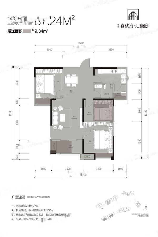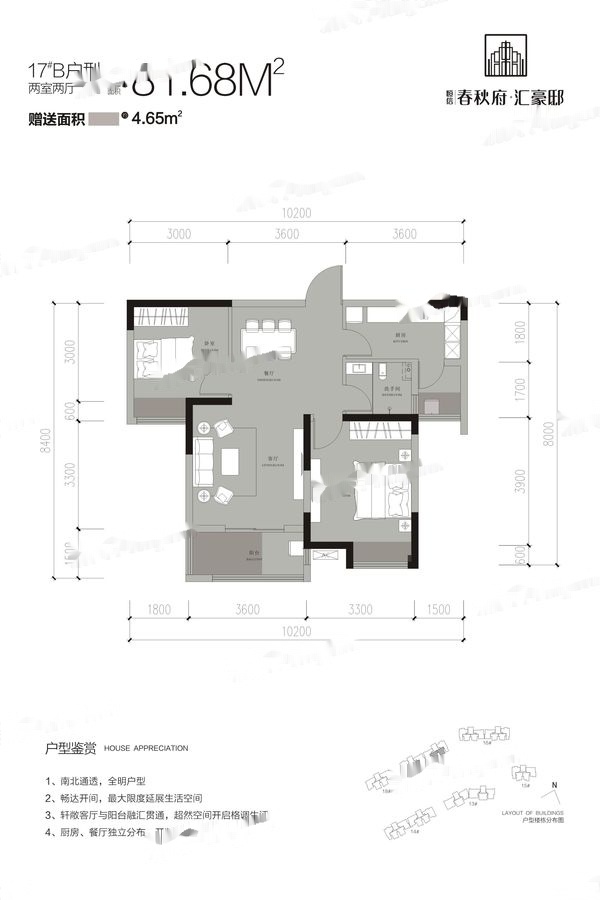 在售 全明格局 户型方正 客厅朝南 主卧朝南