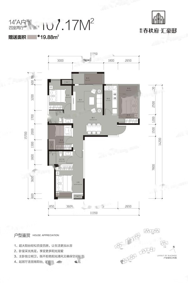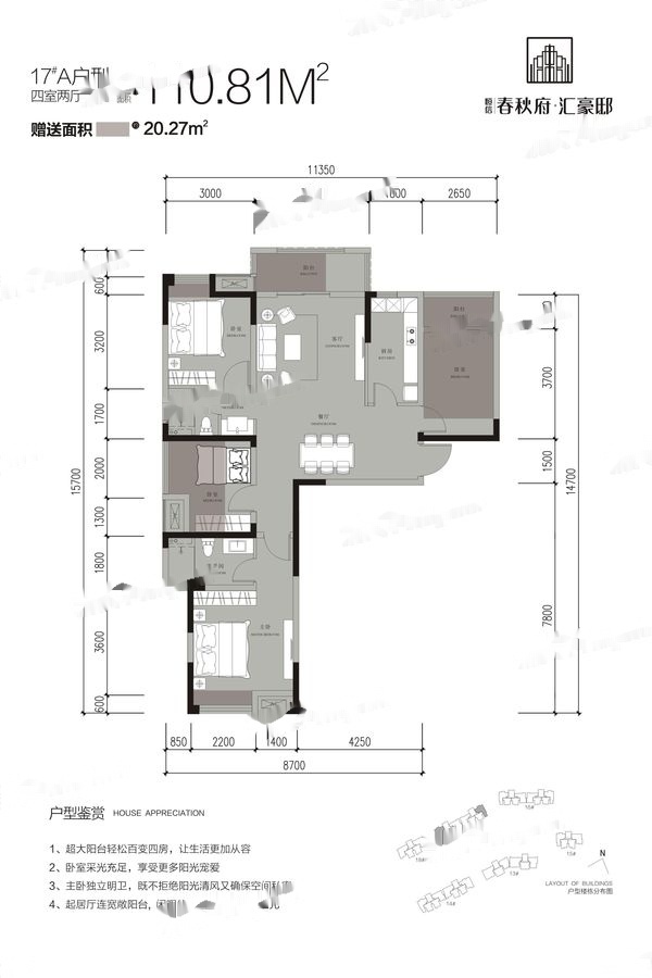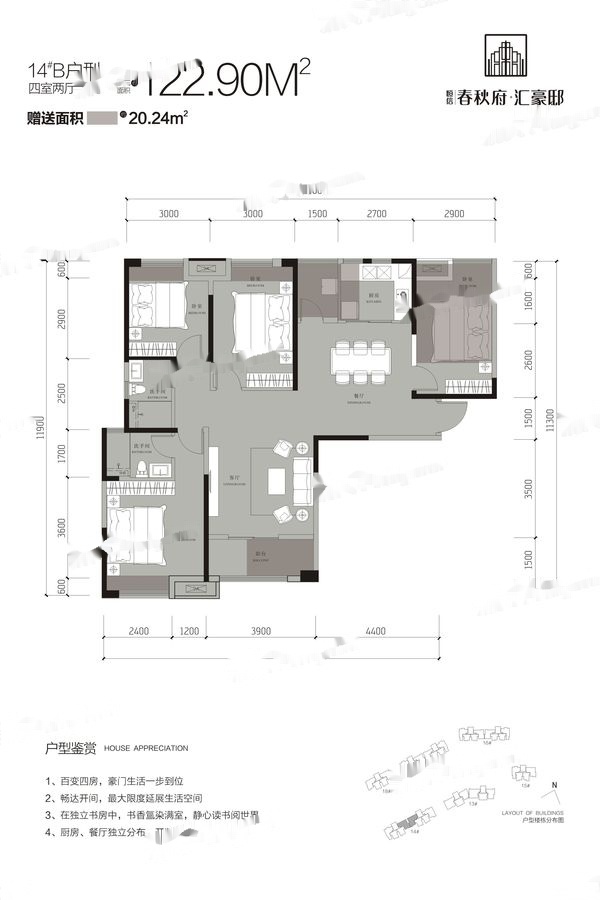 本项目的建筑风格是采用经典的ARTDECO风格,是世界公认的经典造型,不会因时间的流逝而淘汰。双入户大堂设计,日本三菱电梯,1.1米超宽入户门,断桥隔热铝型窗,双层中空镀膜玻璃,先进的环保材料皇彩石漆,霍尼威尔可视对讲,每一样都是经过精挑细选,舒适的居住感充分体现您身份的尊重。 整个小区的园林设计由美国知名ANTO公司设计,运用与天地同寿、日月同辉的设计理念,将整个园林景观设置成三轴一线四庭院的布局,三阳开泰,六通四辟,九合一匡。一线是小区内部横向月亮形的景观路。四庭院分别命名为春(活动空间)、夏(娱乐空间)、秋(交谈空间)、冬(漫步空间)。 小区的园林植物引入各种名贵的绿植,在搭配上非常有序列感,给您以尊贵的品质感。整个布局层次不少于5个层次,层是大乔木、第二层是小乔木、第三层是景观层(造型灌木或各色绿植花球等)、第四层是地被层、第五层为草坪,让您感觉置身在公园之中。 主景观道会铺设花岗岩,单元路会铺调动温暖色调的透水砖,慢步道会铺调卵石或木栈道。配上适度的微地形,行走时随地形变化起伏,感受到更多的景观变化。当您在小区里散步时,处处都会给您不一样的生活感受。 我们恒信德龙就是以造园的理念,考虑您的身份尊重感,考虑您家庭生活居住感受,考虑您的视、听、嗅五官感受,考虑您行走的感受,从细节出发,为您打造出园林级的居住区。 项目总体分2期开发,一期推出四栋楼均为34层的高层建筑,户型面积为87—134平米的,户户朝南,赠送面积达到10%,公摊少,实用率高。