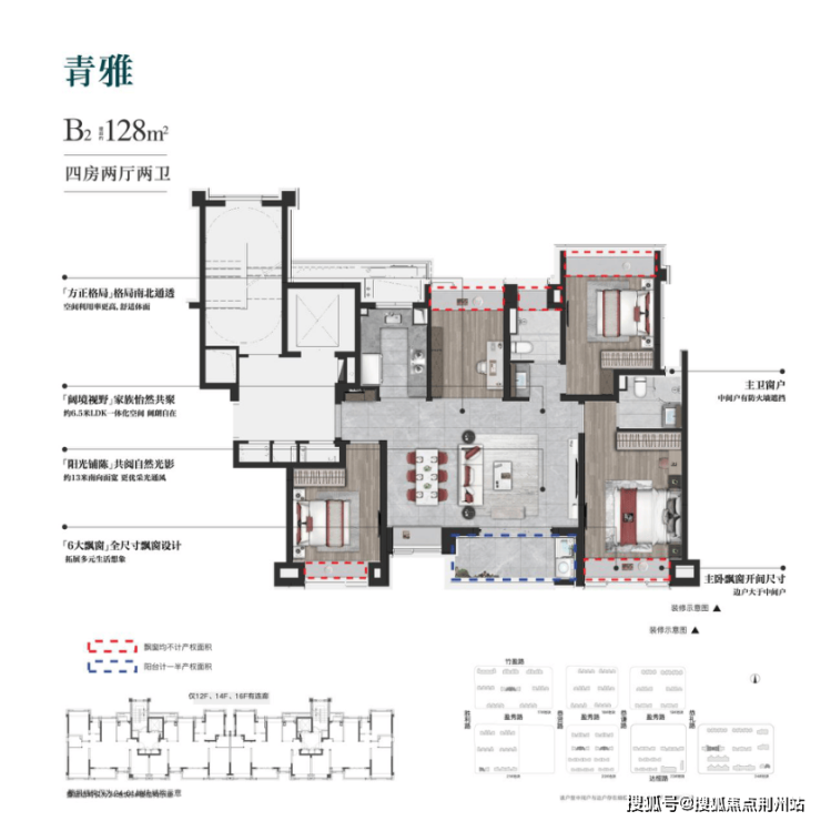 约128㎡4房2卫户型是约99㎡的升级版,四房更能保障业主的全生命周期需求。