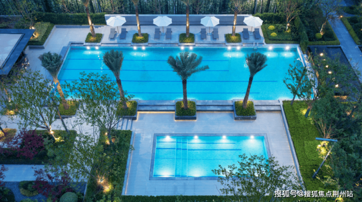 穿过庭院,眼前豁然开朗——参照高端度假村标准打造的双泳池跃然眼前。成人池与儿童池满足全龄需求,更有休闲躺椅、惬意吧台、棕榈树点缀其间。想象周末的清晨在此畅游,或是在夕阳下陪伴孩子嬉水,亦或是在池畔躺椅上读一本好书,度假般的松弛与愉悦,不再是远赴海岛的奢求,而是家门口的日常。