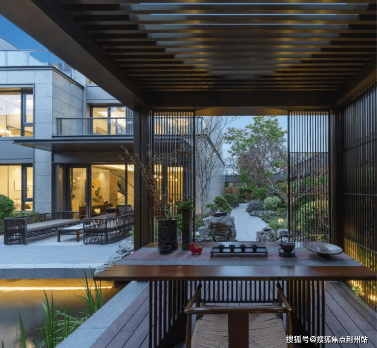 以“一轴三园、一环十景”为序,铺就五进归家礼用东方坡屋顶、超大窗墙比、奢阔楼间距等