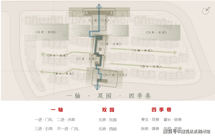 山水与人居巷道的巧妙融合,四季以季节特征的游巷串联起单元入户。