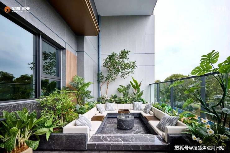 270°环幕湖景,50%的绿植覆盖率让露台成为「空中庭院」,而非单纯的晾晒空间。