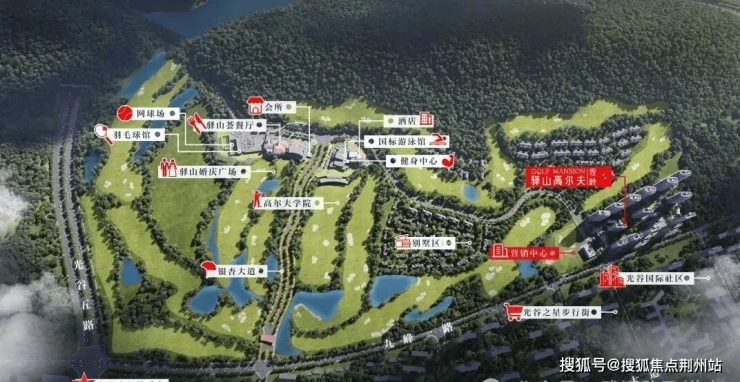 驿山高尔夫整个园区占地约2330亩,其中高尔夫球场就占了约1270亩。另外,整个庄园内仅有的5个住宅地块中,有4块地都做了别墅区(其中一个别墅地块尚未开发),且在10多年前,高尔夫庄园内的别墅就成了武汉富豪们的逐鹿场,如今压轴的观岭地块是园区内仅有的高层地块。
