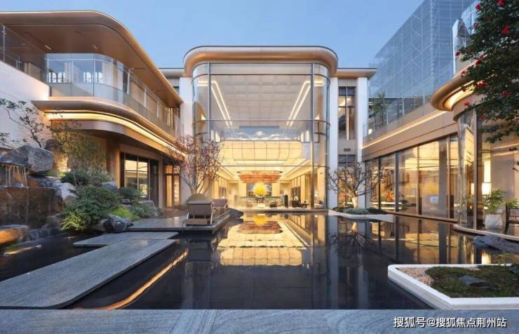 大面积玻璃幕墙在阳光下折射出温暖的光泽,远远望去,整座建筑群像是被镀上了一层金色的光晕。公区打造绝对是奢材满堆,用料十足。