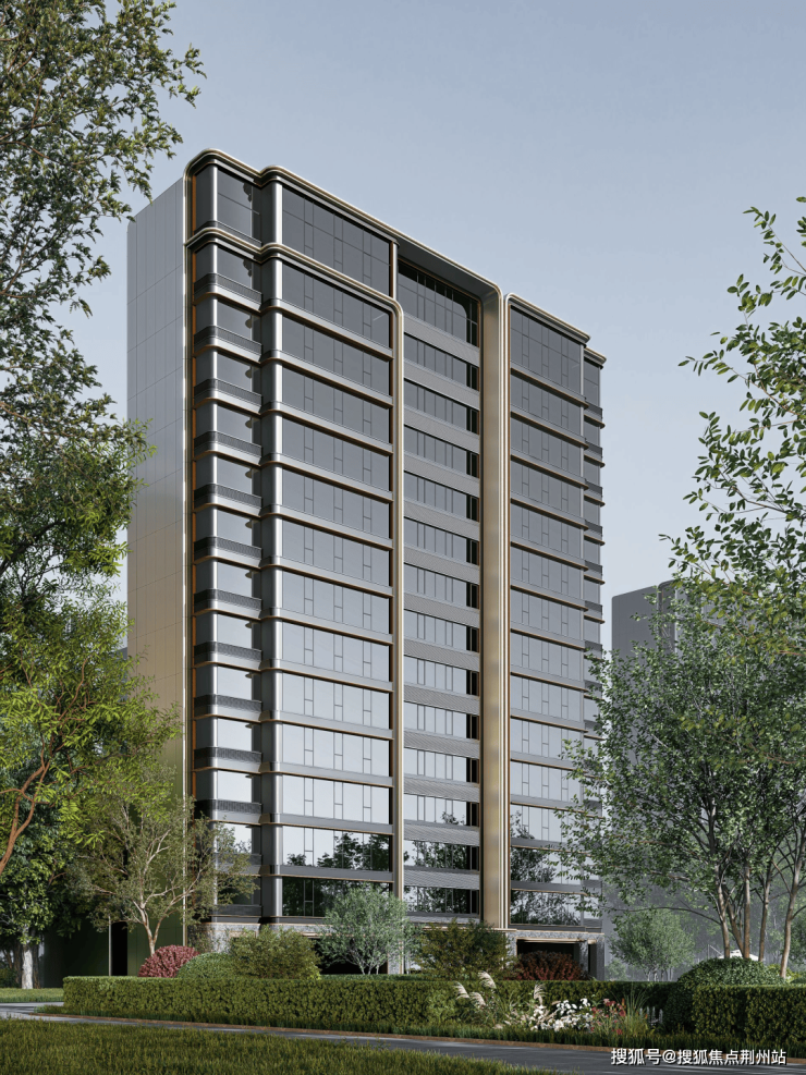 项目建筑效果图,阳台立面为封窗后二改的效果,景观围墙仅为示意,最终以实际交付为准。