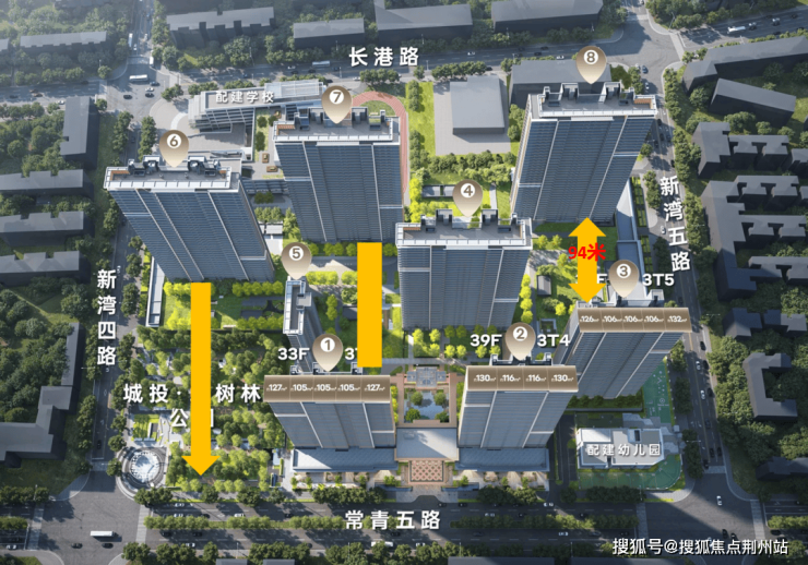 空间规划:最大楼间距94 米 + 全户型独梯入户