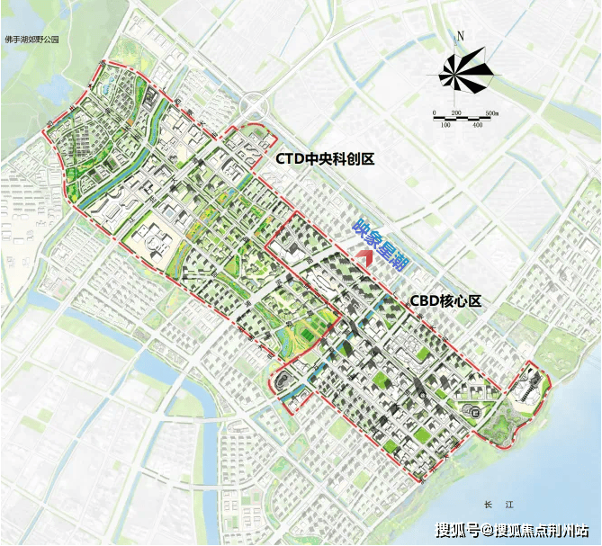 江北核心区域,被分为3.1平方公里的CTD中央科创区和2.4平方公里CBD核心区两个部分。
