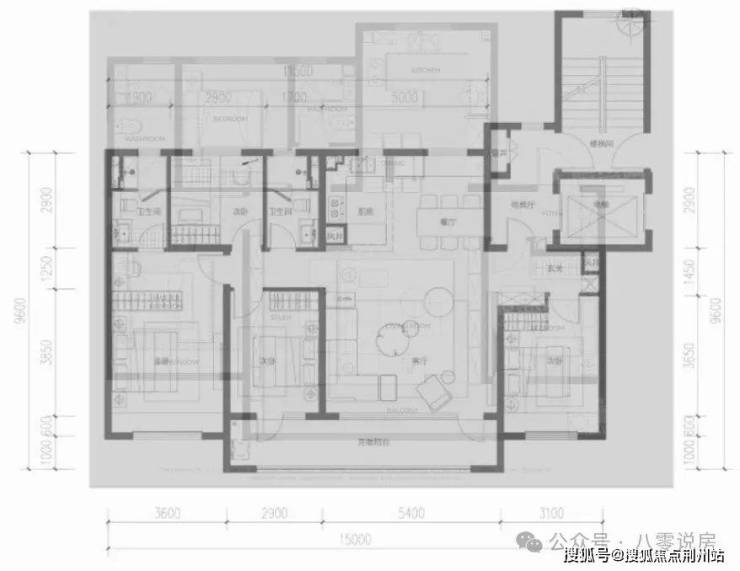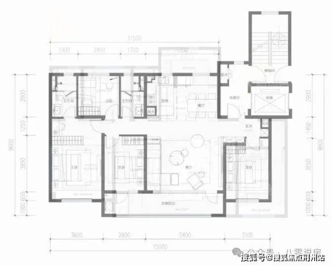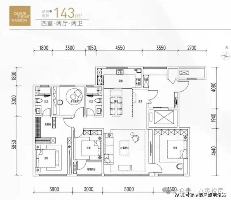 这就导致,在南向面宽一致的假设下,户型进深明显变大;所以实际上要比中欧金茂府143㎡的户型面宽收窄,进深放长;也就降低了"牺牲宽厅、三房变四房"的可行性。