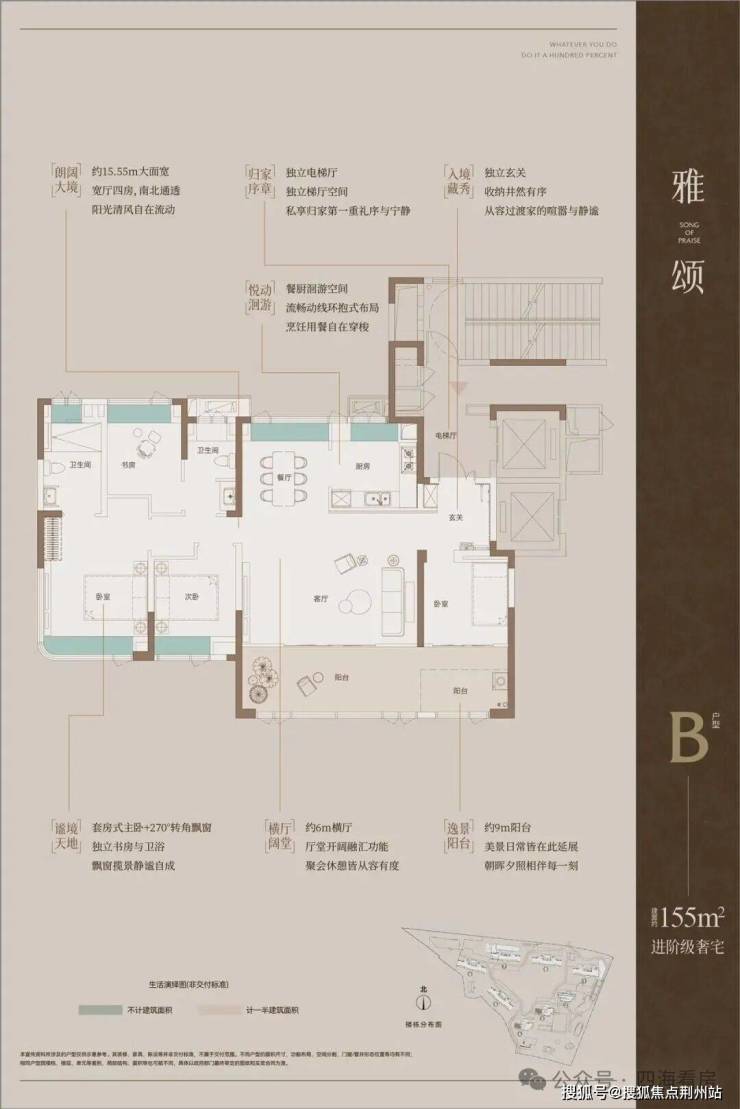 建面约155㎡全景舱户型,LDKB一体化厅,大面宽、阔景阳台无界视野。