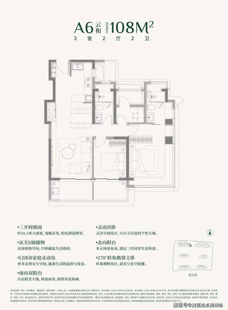 建面约108㎡3房的三阳台面积就高达约13㎡。(阳台仅附赠一半面积)