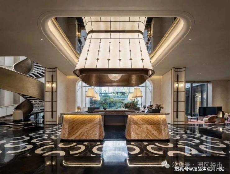 进入售楼处大门的一刹那,超大面积的金属,奢石,岩板,白玉,景泰蓝等等映入眼帘。