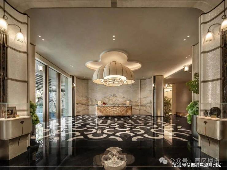 而架空层墙面用白玫瑰石材,架空层层高也是目前苏州最高标准,更高的空间尺度,给予客户更尊贵的归家感受。
