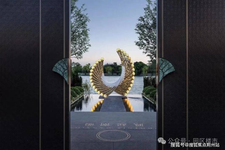 约85米的东方屋檐归家社区大门,整个门头以古代帝王冠冕为设计概念,大门中间以高约6.1米宽约6.5米的定制凤起“冕旒”,整个冕旒约6045片景泰蓝纯手工完成,全苏州独一无二。