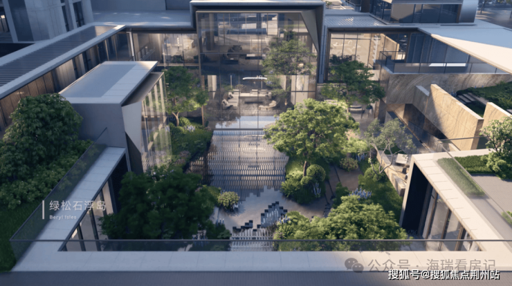 水晶景观庭院在动与静之间,细节到了流水、园林里,值得一提的是,庭院里的水,并不是静态,而是有涟漪的流动,同时为了保证低区业主不被流水声音干扰,特意做了“静音水”。这一现象的背后,是1300多块安哥拉石材的切割与拼接,完全是把细节拉满。