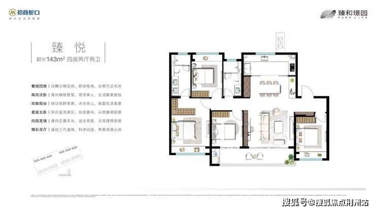 3. 招商臻和璟园,打造8-11F洋房,容积率1.6,270户,128㎡、143㎡四房两厅两卫户型备案价约37871元/㎡,总价约485万起。