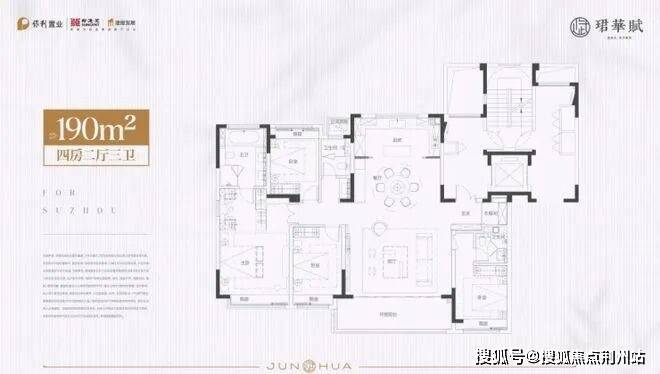 1. 保利珺华赋,打造13-17F小高层,为双国企打造的纯改善社区,户型有152-222㎡四房,190㎡为经典款,均价约37500元/㎡,总价约570万起。